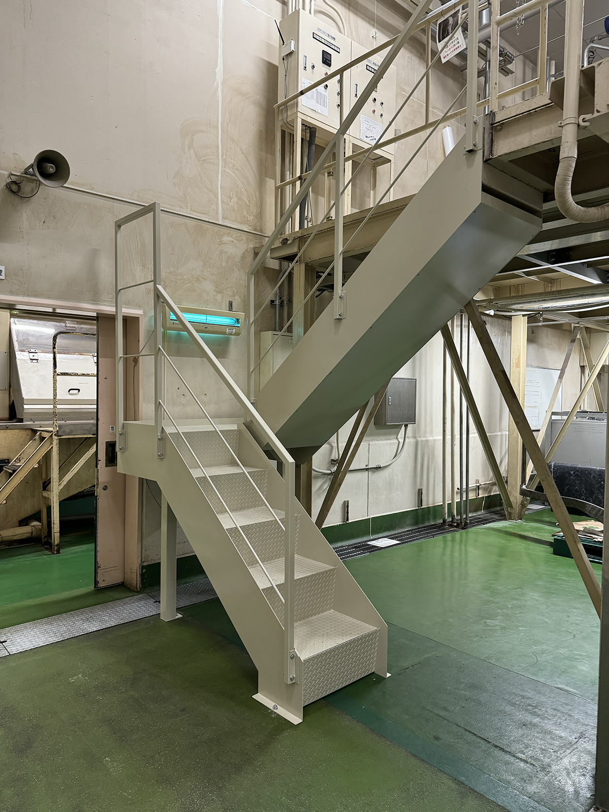 昇降階段・手摺_スチール製_焼付塗装仕上げ
